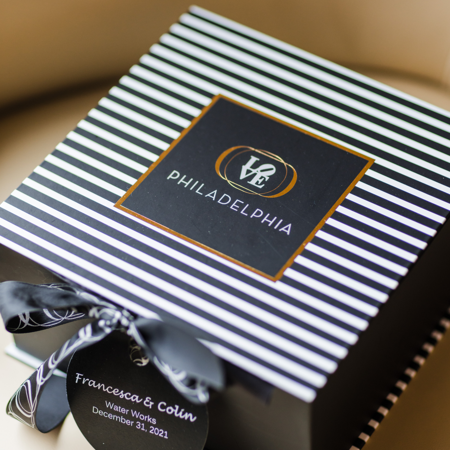 The boxes include an array of snacks, keepsake items, and a personalized itinerary of your wedding weekend! We assemble the custom boxes and deliver them directly to your hotel.