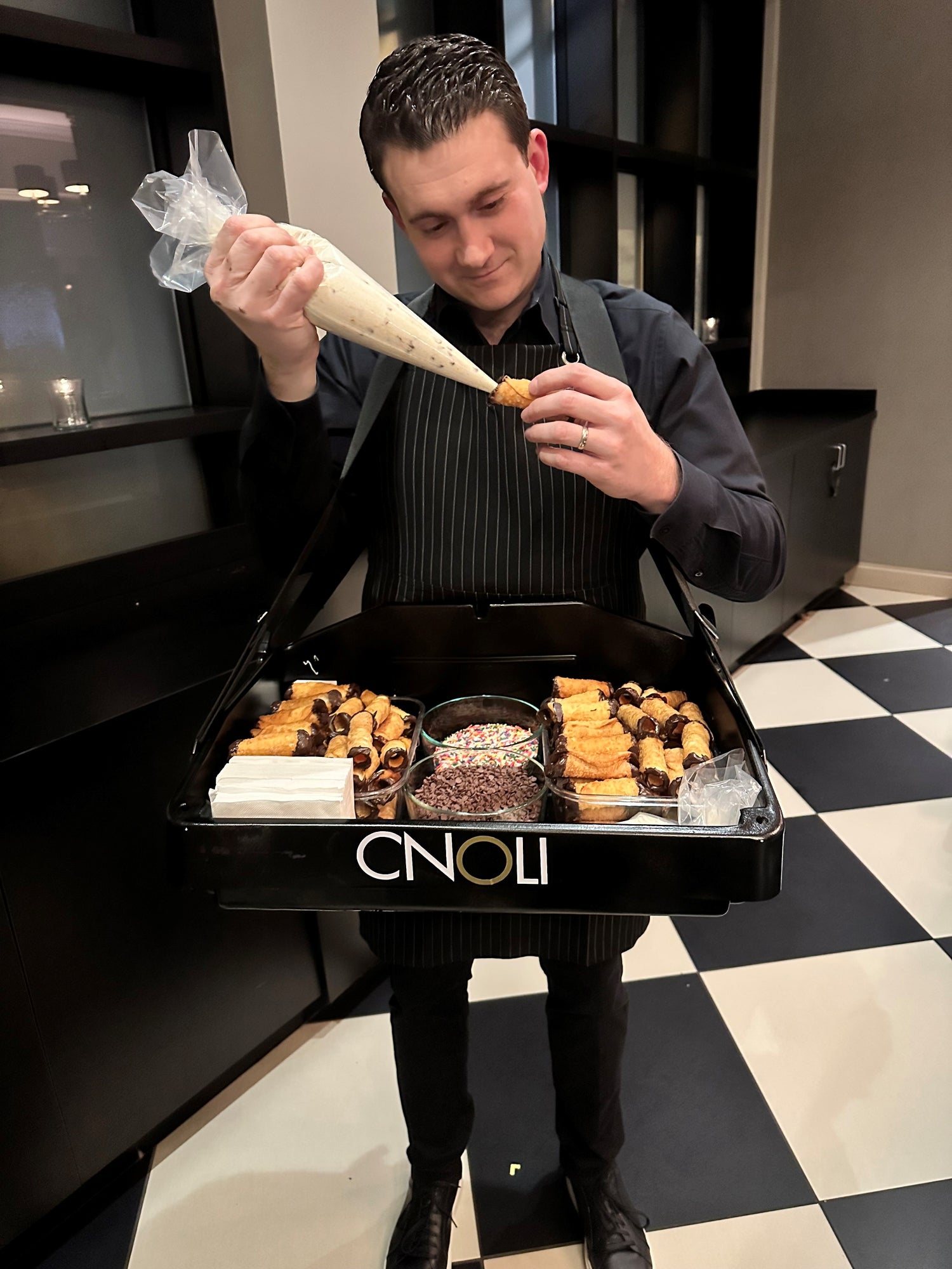 Looking to add a unique, fun, and interactive element to your wedding? CNOLI has you covered! Our exciting and memorable cannoli piping service brings homemade deliciousness straight to your guests – right on the dance floor!