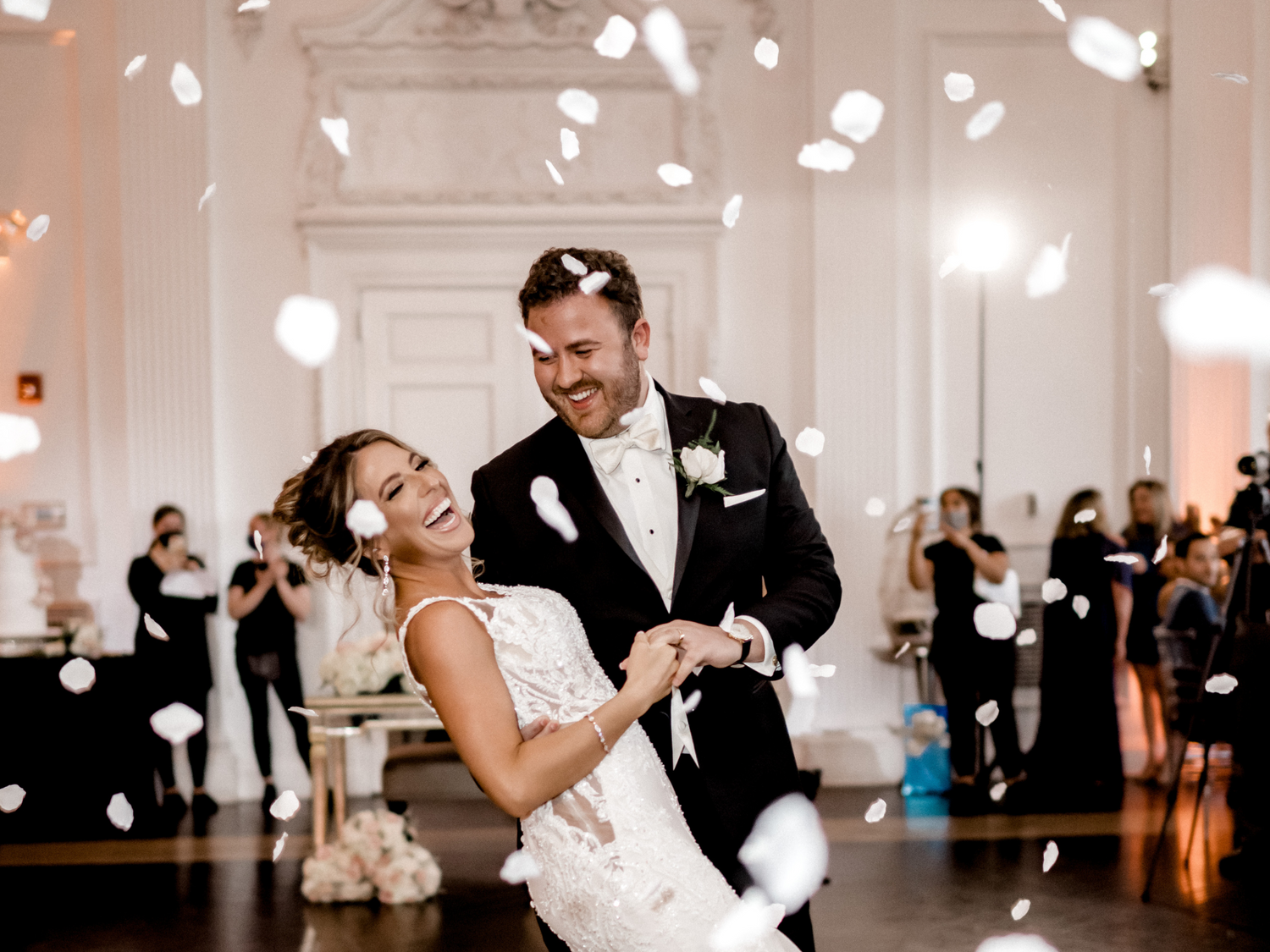 A cascade of white flower petals will be shot into the air and cascade as you tie the knot, during your first dance or while you cut your cake!